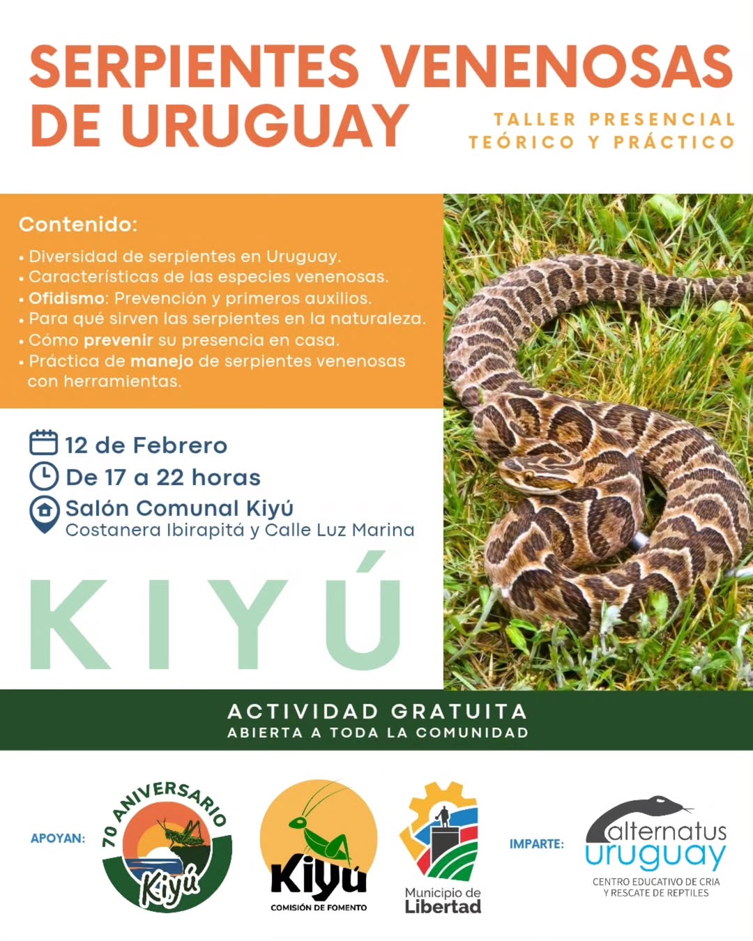 Kiyú es un balneario con gran presencia de cruceras (Bothrops alternatus). Aprenderán con nosotros a identificar a las especies venenosas🐍 y qué hacer en caso de encuentros o accidentes. Taller presencial y gratuito. Avanzamos hacia el propósito de establecer una red de rescate a nivel nacional 💪
